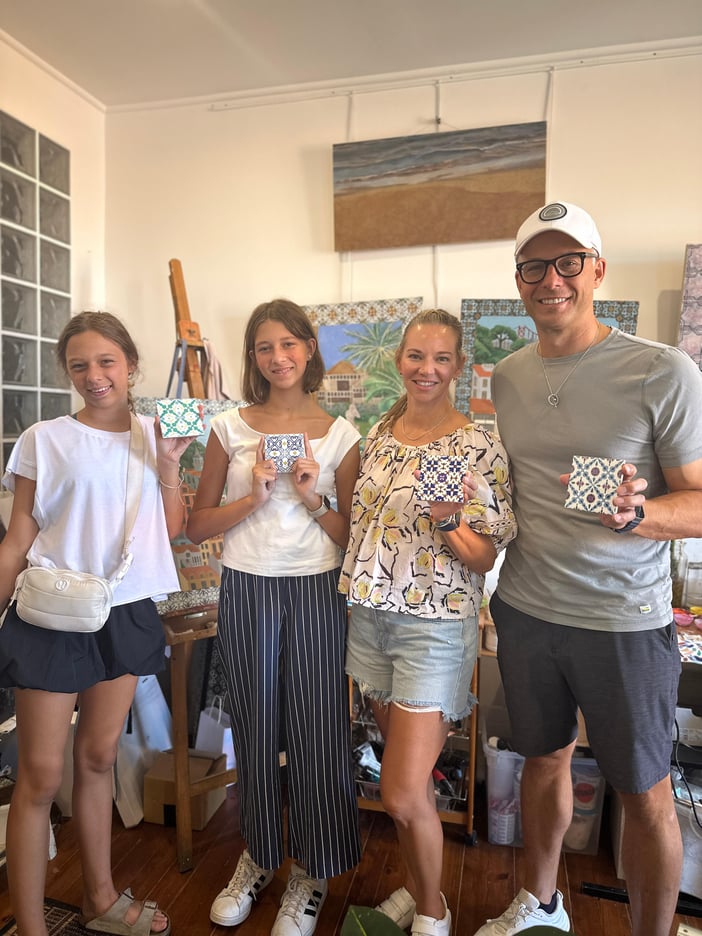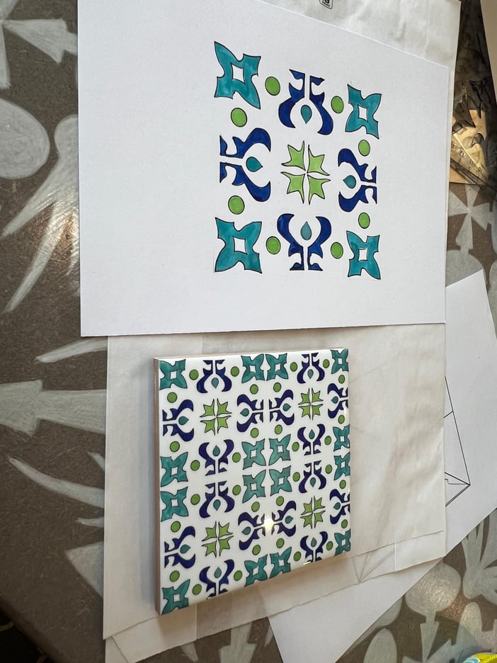 Je vous accompagnerai tout au long de l’atelier et partagerai avec vous mon expertise de peintre et mes connaissances sur les azulejos portugais .